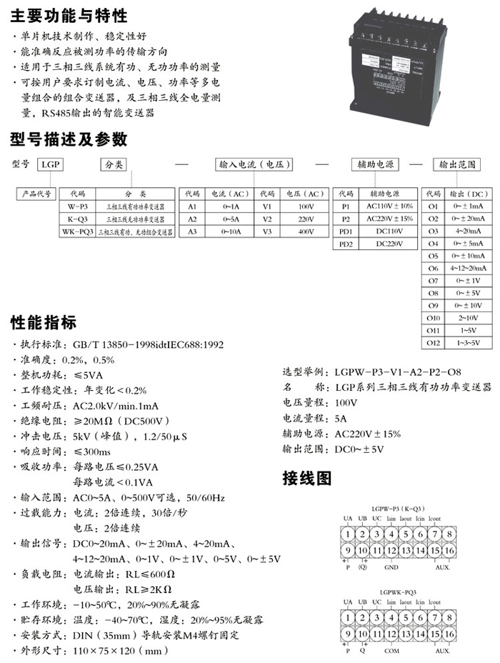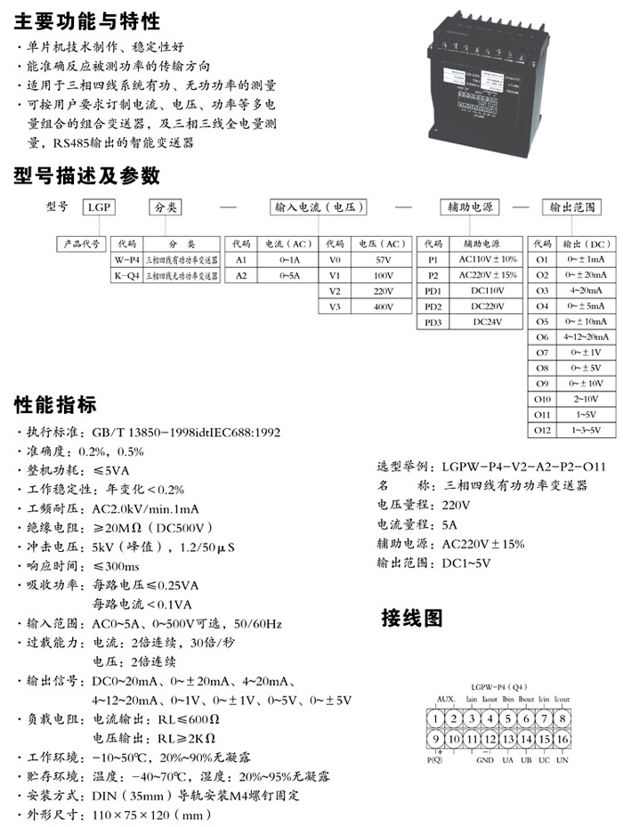 LGP系列有功(無功)功率及功率因數(shù)變送器